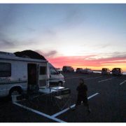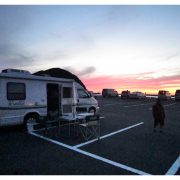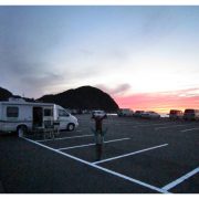 (夜は駐車場に停泊)夕日を見ながら家族団らんができとても良かったです。