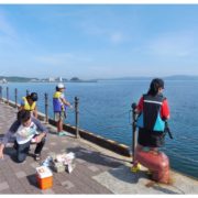 ・干里浜なぎさドライブ … オープンまで波止場で釣りをして待っていた。