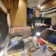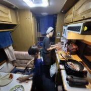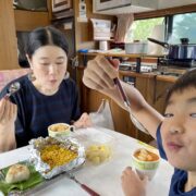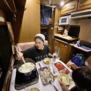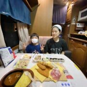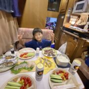 キャンピングカー5泊ともなると奥様はキッチンをフルに活用されてのダイニングでのご夕食、まるで自宅にいらっしゃるかの様な幸せな雰囲気です。
