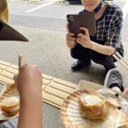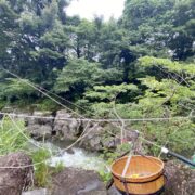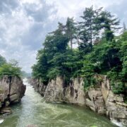 厳美渓散策へ、空飛ぶ団子を体験。