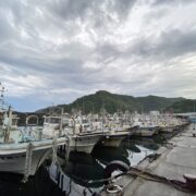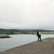 RVパークは川と海と山の真横、真前、真下ということもあってなんだか心配になり、隣の漁港にキャンピングカーごと移動