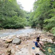 3人で厳美渓をみわたす岩に腰下ろし、団子をかじりお茶をすする、なんていう美味さだろう。