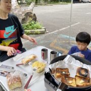 息子は初めての車中泊、暑くてとても寝苦しかった。