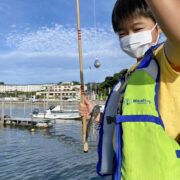 港湾内にて釣り開始、クジメ(アイナメ)、リュウグウハゼ、メバル、サバなど釣れて、食材は確保。気づいたらすっかり晴れている。