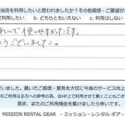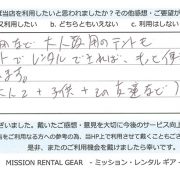 【アウトドア用品レンタル】 東京都 H.T様 (女性)