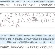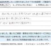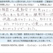 【アウトドア用品レンタル】 宮城県 S.I様 (女性)
