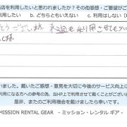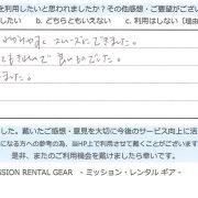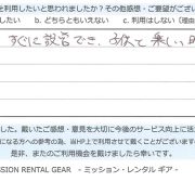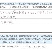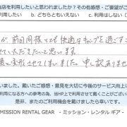【アウトドア用品レンタル】 北海道 W.A様 (男性)
