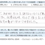 〔 ご利用者様より 〕 この度は急な依頼にも関わらず、レンタルさせていただき有難うございます。 また機会があれば利用させていただきます。 〔 当店ス ...続きを読む
