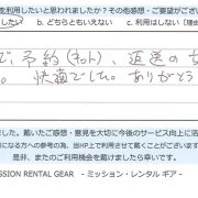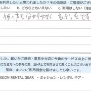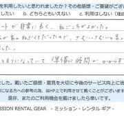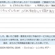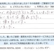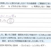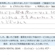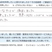 【アウトドア用品レンタル】 栃木県 O.K様 (男性)
