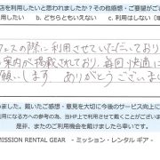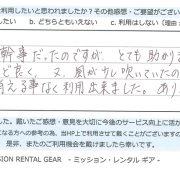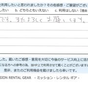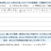 【アウトドア用品レンタル】 宮城県 K.Y様 (女性)