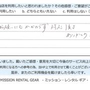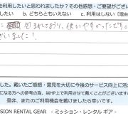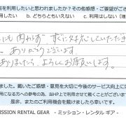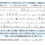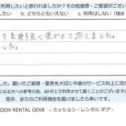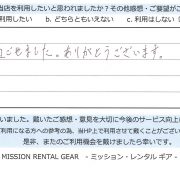 【アウトドア用品レンタル】 神奈川県 S.S様 (男性)