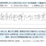 〔 ご利用者様より 〕 急な依頼だったにも関わらず、すぐに対応していただき、大変助かりました。 とても快適でした。ありがとうございます。 また機会があ ...続きを読む