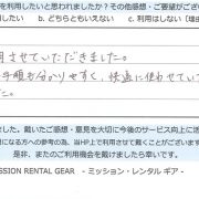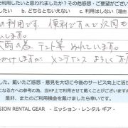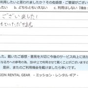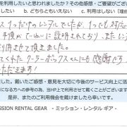【アウトドア用品レンタル】 宮城県 S.N様 (女性)
