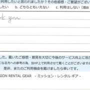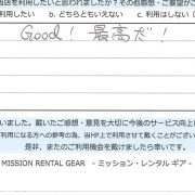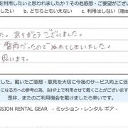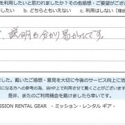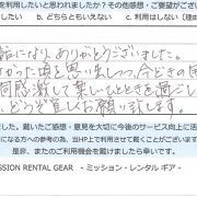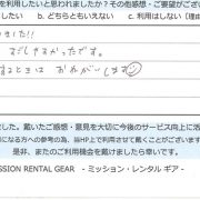 【アウトドア用品レンタル】 千葉県 F.H様 (男性・リピーター)