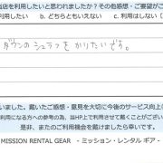 〔 ご利用者様より 〕 ありがとうございました。 〔 当店スタッフより 〕 シュラフ(ブラゾス)をご利用戴きました。 ご利用誠に有難うございました。 ...続きを読む