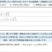 〔 ご利用者様より 〕 とてもきれいで使用感が無く気持ちよく利用できました。 この度は急なお願いにもかかわらず、休日にご対応いただきありがとうござい ...続きを読む