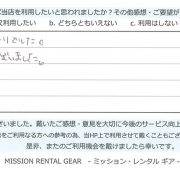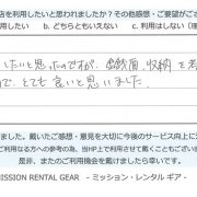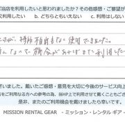 【アウトドア用品レンタル】 神奈川県 K.S様 (男性)