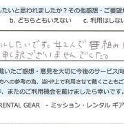 【アウトドア用品レンタル】 東京都 H.T様 (男性)