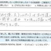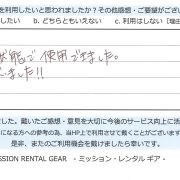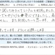 〔 ご利用者様より 〕 御社は遠方で少し料金が高かったですが、電話の対応が非常に親切で初めてのレンタルにはとても安心感をもてました。 また利用します。 ...続きを読む