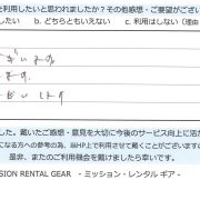 〔 ご利用者様より 〕 このたびはありがとうございました。 (アンケートを)商品返送時に返信できずすみません。 また利用したいと思います。 〔 当店 ...続きを読む
